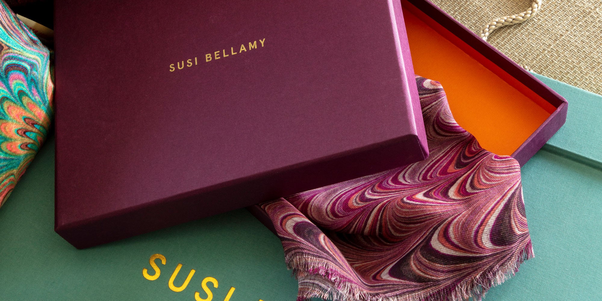 Susi Bellamy creates vibrant, colourful interiors based on original and unique artwork painted in the studio, and hand marbled paper designs using traditional techniques. Her artwork is inspired by her great love of colour, her background as a fashion editor and her time working and living in Florence. Susi's work can be found in collections internationally and she now works from Newcastle, England.
