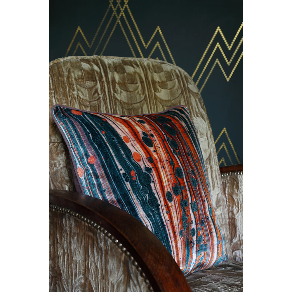 Our marbled designs originate from hand marbled papers, a mesmerising, ancient technique which became popular in Europe during the 18th century and often used by book binders. The abstract designs are based on crops of Susi’s original paintings. All of our cushions are made locally by an independent seamstress to the highest standards