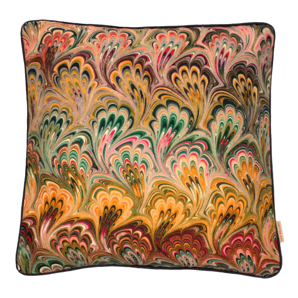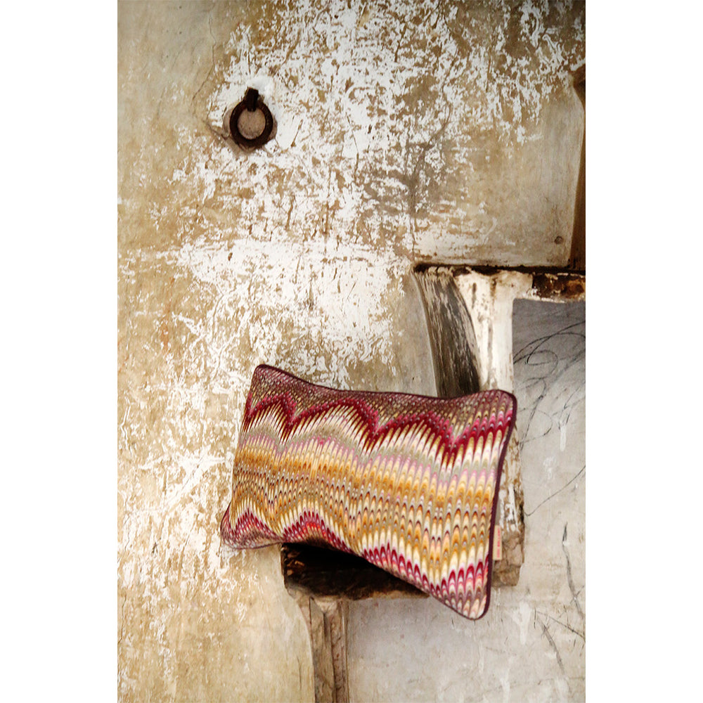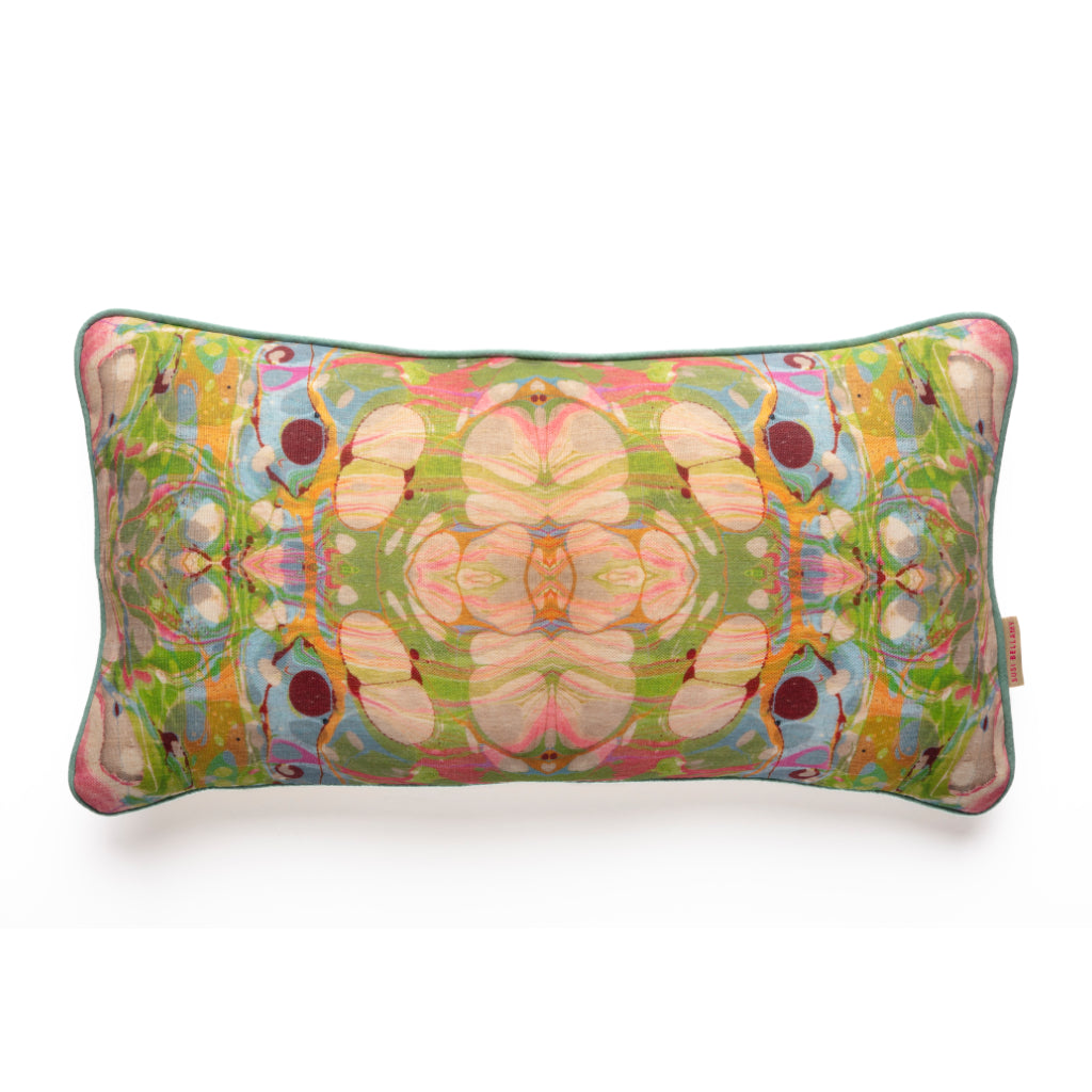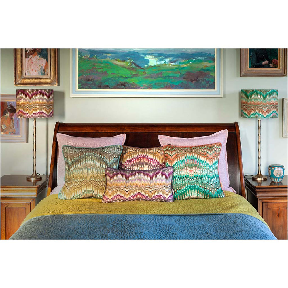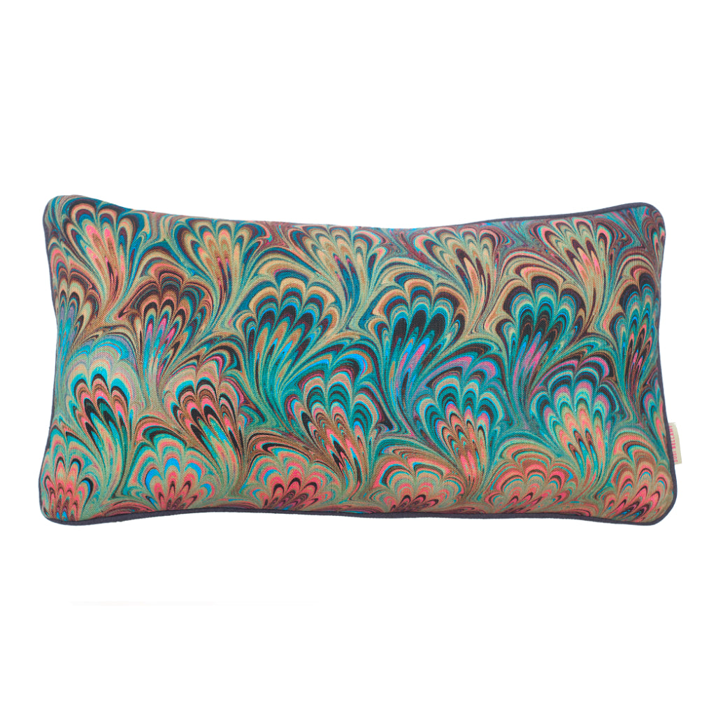 The linen collection of cotton-backed cushions marry unexpected combinations of neutral and acidic colours with a woven, organic feel to create a more down-to-earth collection for the home. The plasmic effect created in the marbling process recalls natural textures that float across the surface of the cushion in candied colours.