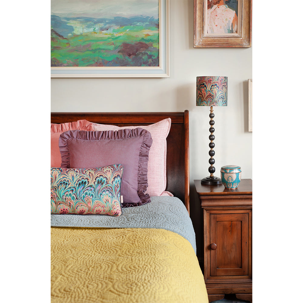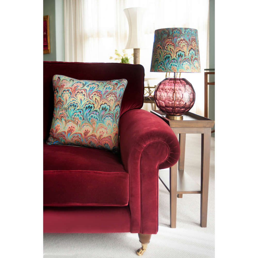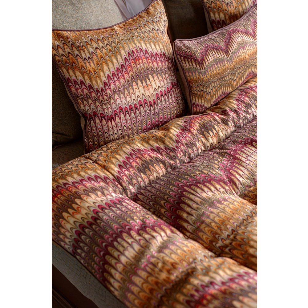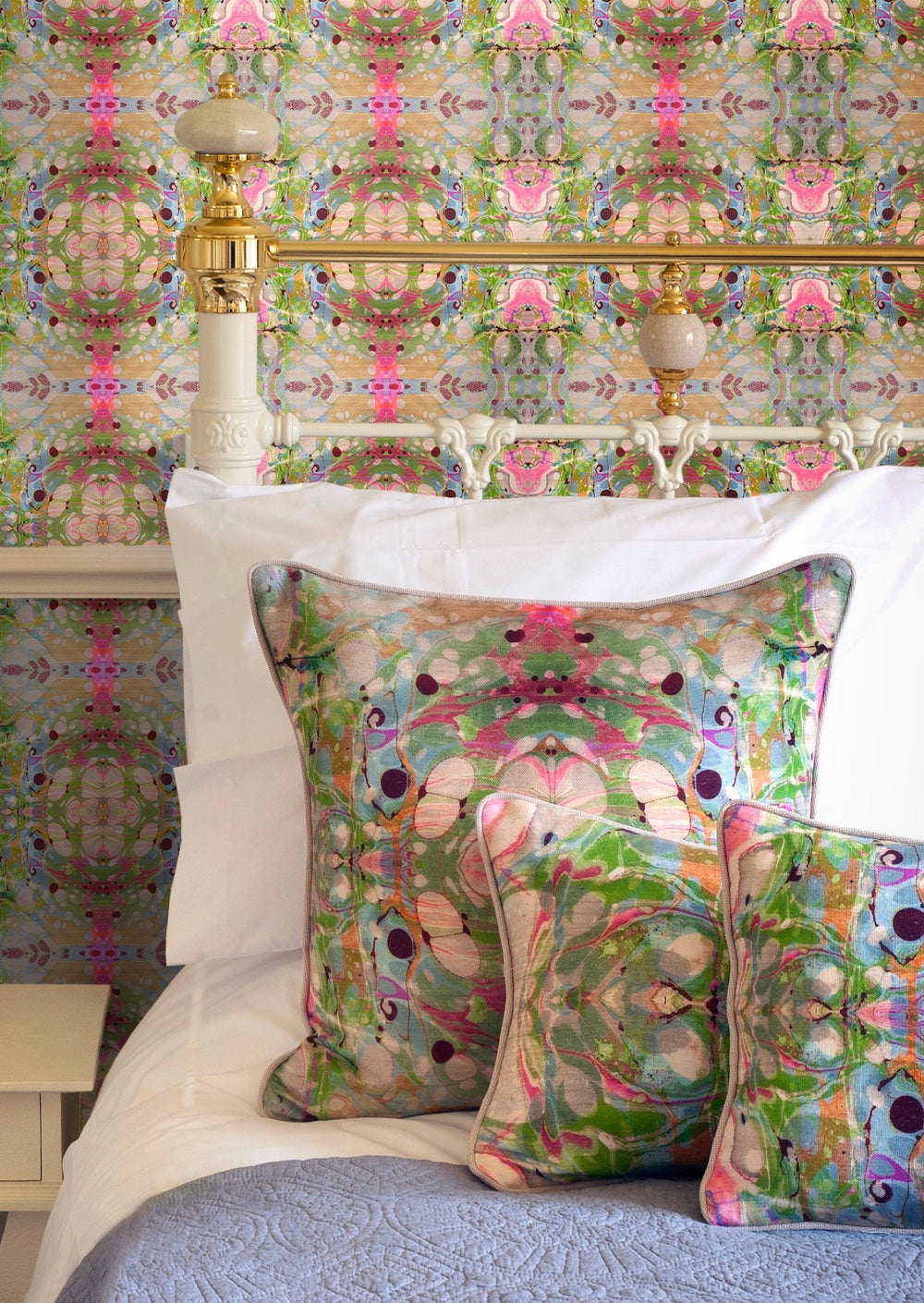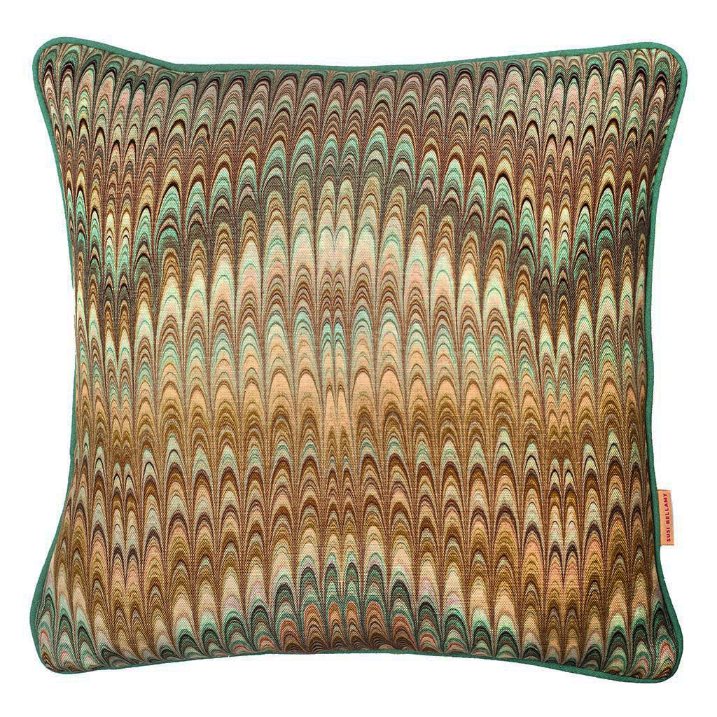 The linen collection of cotton-backed cushions marry unexpected combinations of neutral and acidic colours with a woven, organic feel to create a more down-to-earth collection for the home. The plasmic effect created in the marbling process recalls natural textures that float across the surface of the cushion in candied colours.