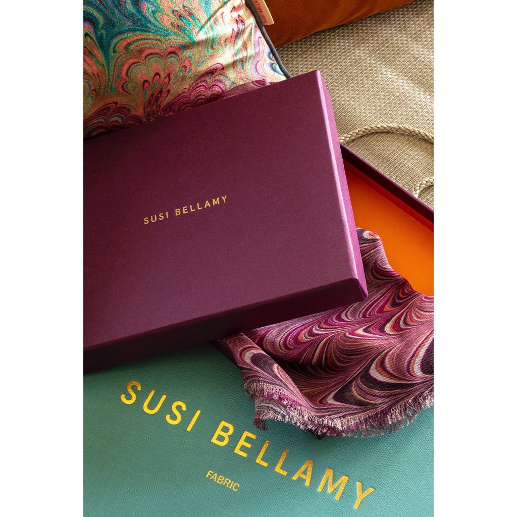 Susi Bellamy creates vibrant, colourful interiors based on original and unique artwork painted in the studio, and hand marbled paper designs using traditional techniques. Her artwork is inspired by her great love of colour, her background as a fashion editor and her time working and living in Florence. Susi's work can be found in collections internationally and she now works from Newcastle, England.