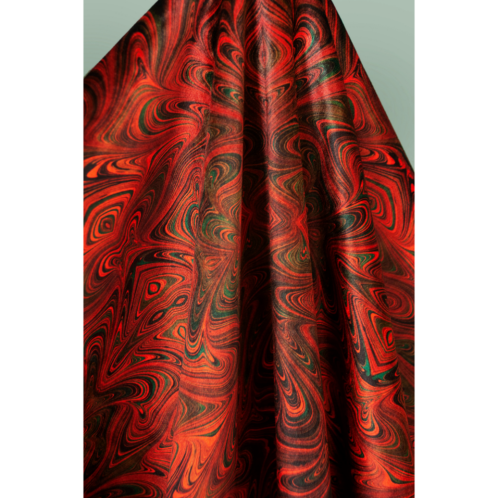 The dark orange and bottle green striations of this Amber Strata velvet fabric are reminiscent of cut stone such as Malachite. We have taken our favourite kaleidoscopic design and tiled it out to make this rich and decadent pattern. Perfect for upholstery projects or for pairs of sumptuous curtains, we feel this fabric is a winner!