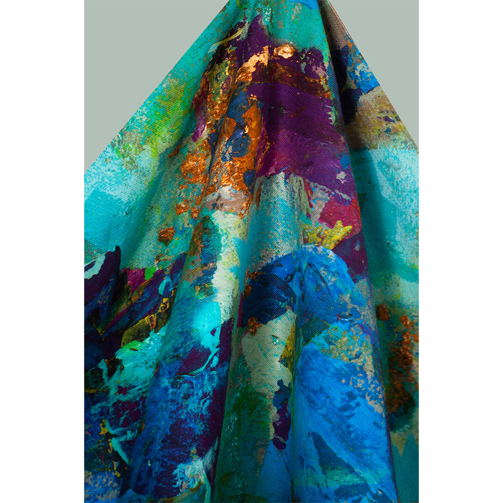 Susi's artwork is inspired by the beautiful colours and light in her landscapes of Northumberland and Tuscany and this Azure design is a microcosm of one of her colourful paintings.