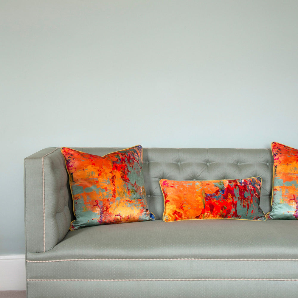 This beautiful abstract design is part of our Grey Stucco collection and illustrates perfectly the mark of the artist. The design is a section of one of Susi's abstract paintings and showcases perfectly a microcosm of a larger work. With its asymmetric design this luxurious oblong cushion is truly 'Art for the sofa'...add this to your cushion arrangement on your sofa to add depth and height.